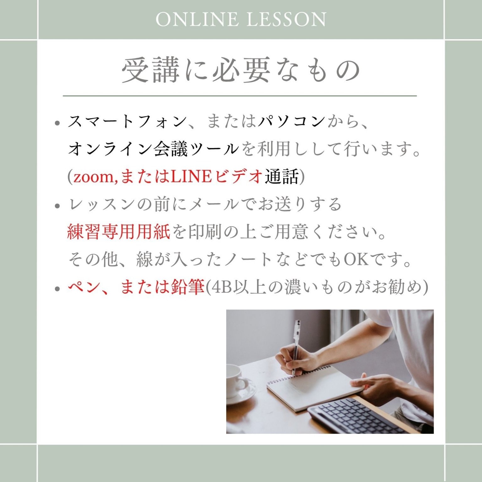 ・お申込み後に、練習用紙の画像をお送りしますので、練習日までに印刷をお願いします。