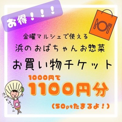 3.浜のおばちゃんお惣菜コーナーにて1100円分のお買い物をお楽しみください♪