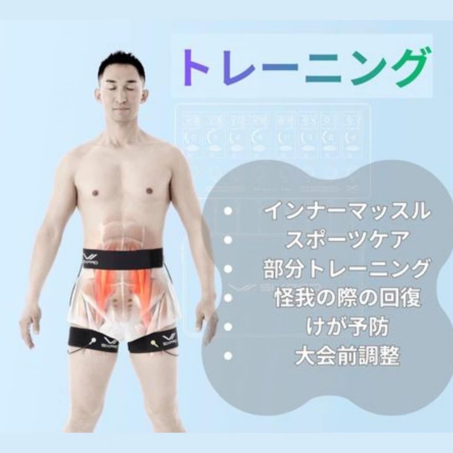 シックスパッドだけの独自の干渉波技術により、体幹内部に20Hzの合成波を発生させ、インナーマッスルを効率的にトレーニングします。