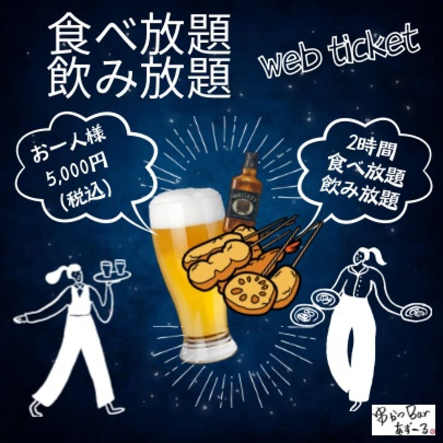 京都祇園の串かつBarあずーるの【飲み放題!食べ放題!2時間webチケット】です。