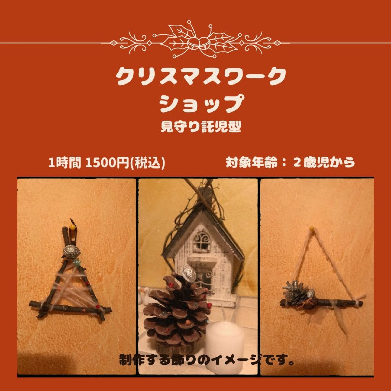 ・年齢に応じ、お子さんが選択した自然物を利用したクリスマス飾りをスタッフと一緒に作ります。