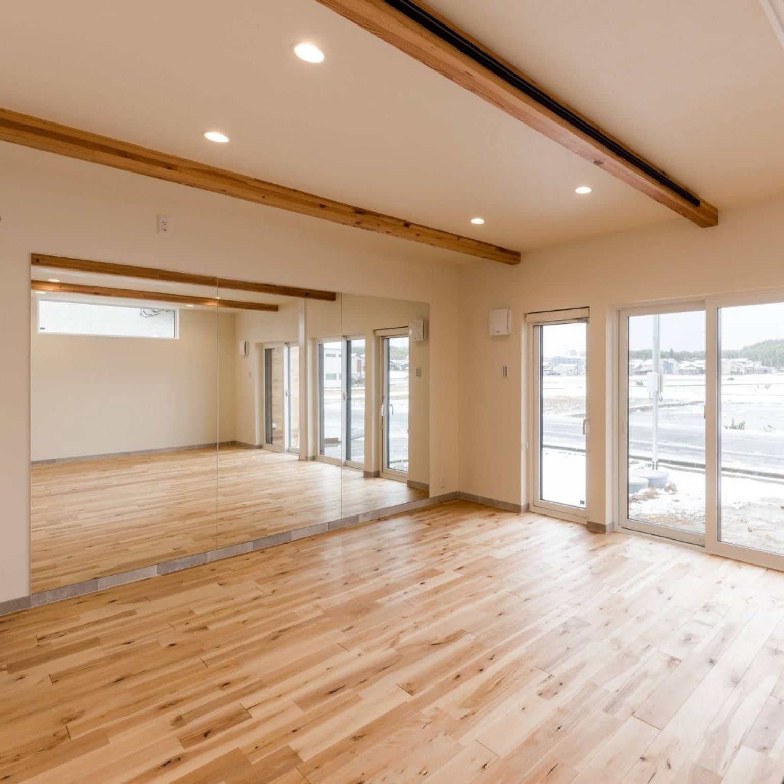 こちらは、全身鏡が壁の一面に張られ、ヨガやダンスのレッスン、着付けやメイク・ファッションイベントにも最適です。