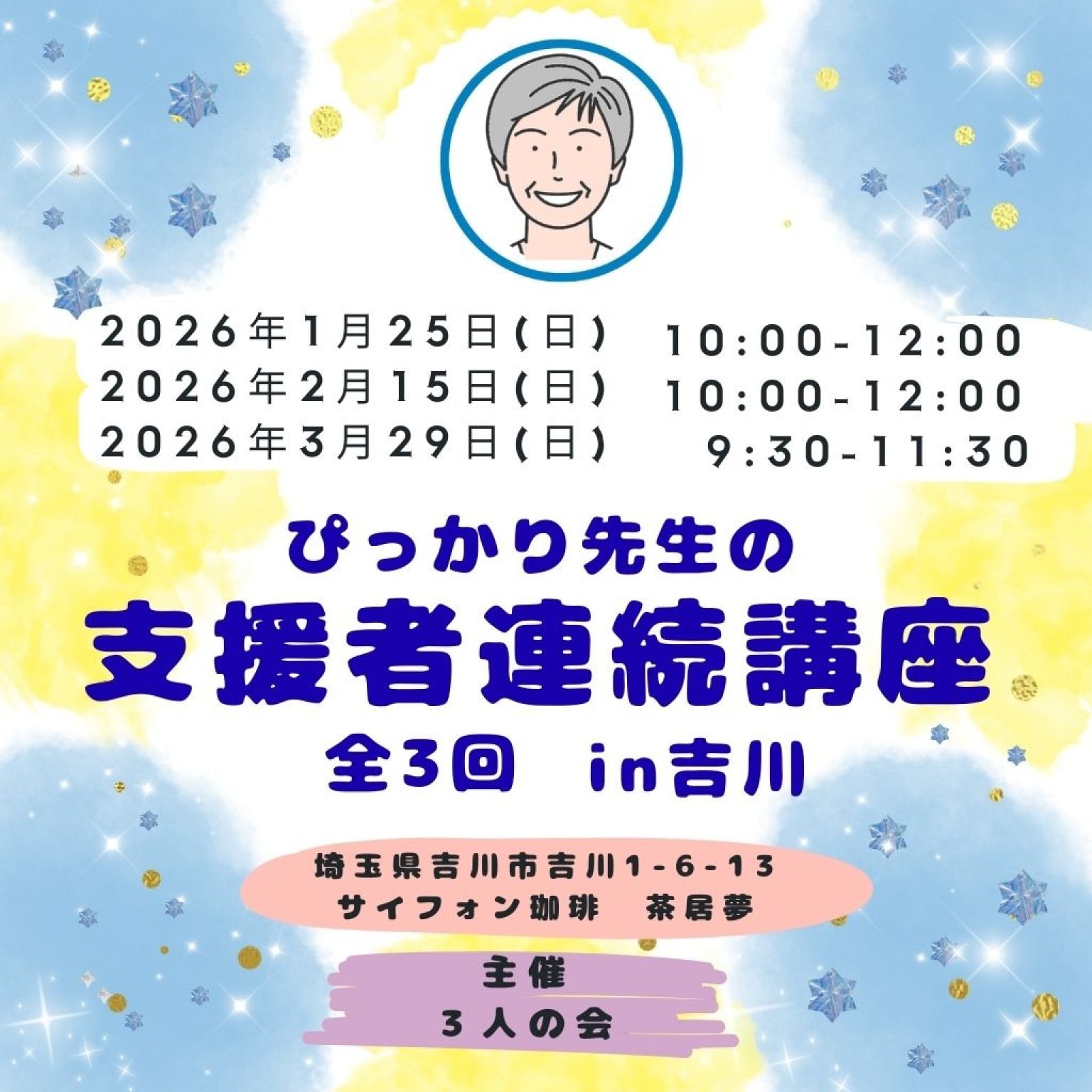 ぴっかり先生の支援者連続講座(全3回) 主催:3人の会