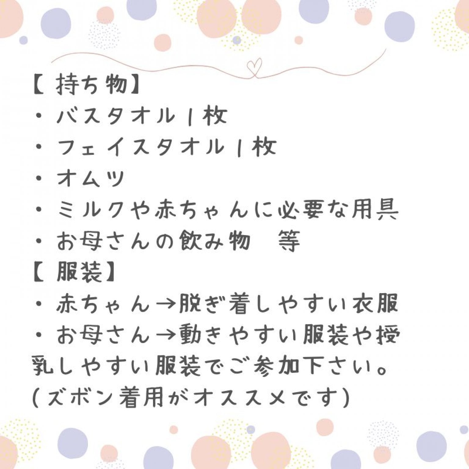 ◎1つ1つやるごとに何の効果があるのか説明がわかりやすくて面白かったです(*^^*)ぐずぐずしちゃって子ども本人にできなかったけど焦らずゆっくり対応してくれて自分自身もゆっくり落ち着いて参加することができました✨