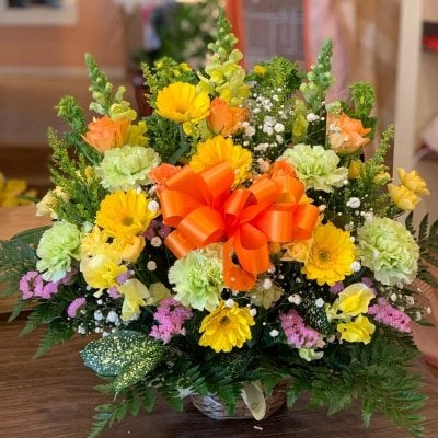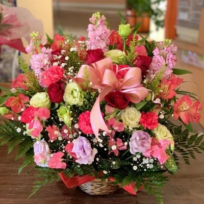 アレンジメントもしくは花束をお選びいただけます。