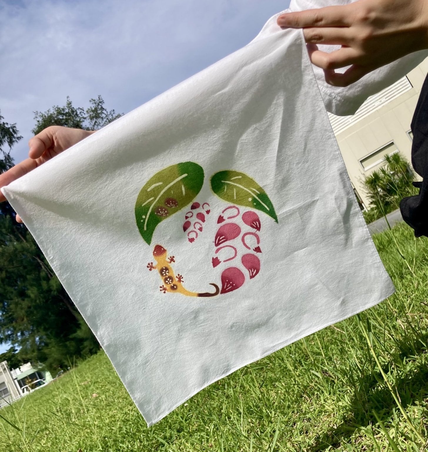 染めた作品は当日お持ち帰り頂き、5〜7日乾燥後に糊を落とす水洗い作業をして完成です。