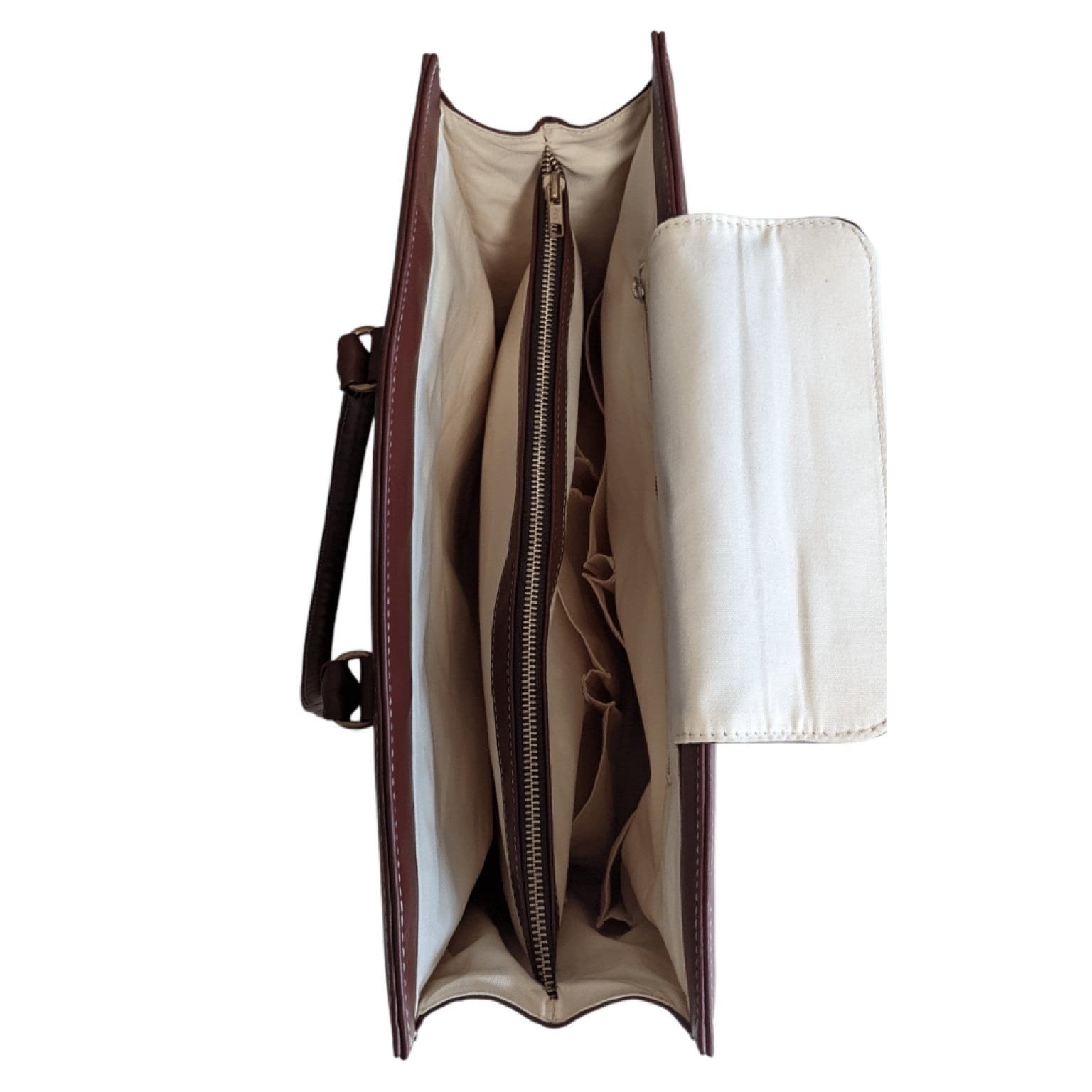 営業で使われるとのことで、中袋もパソコンを入れられるようにクッション性をもたせたり、仕切られるポケットもつけました。