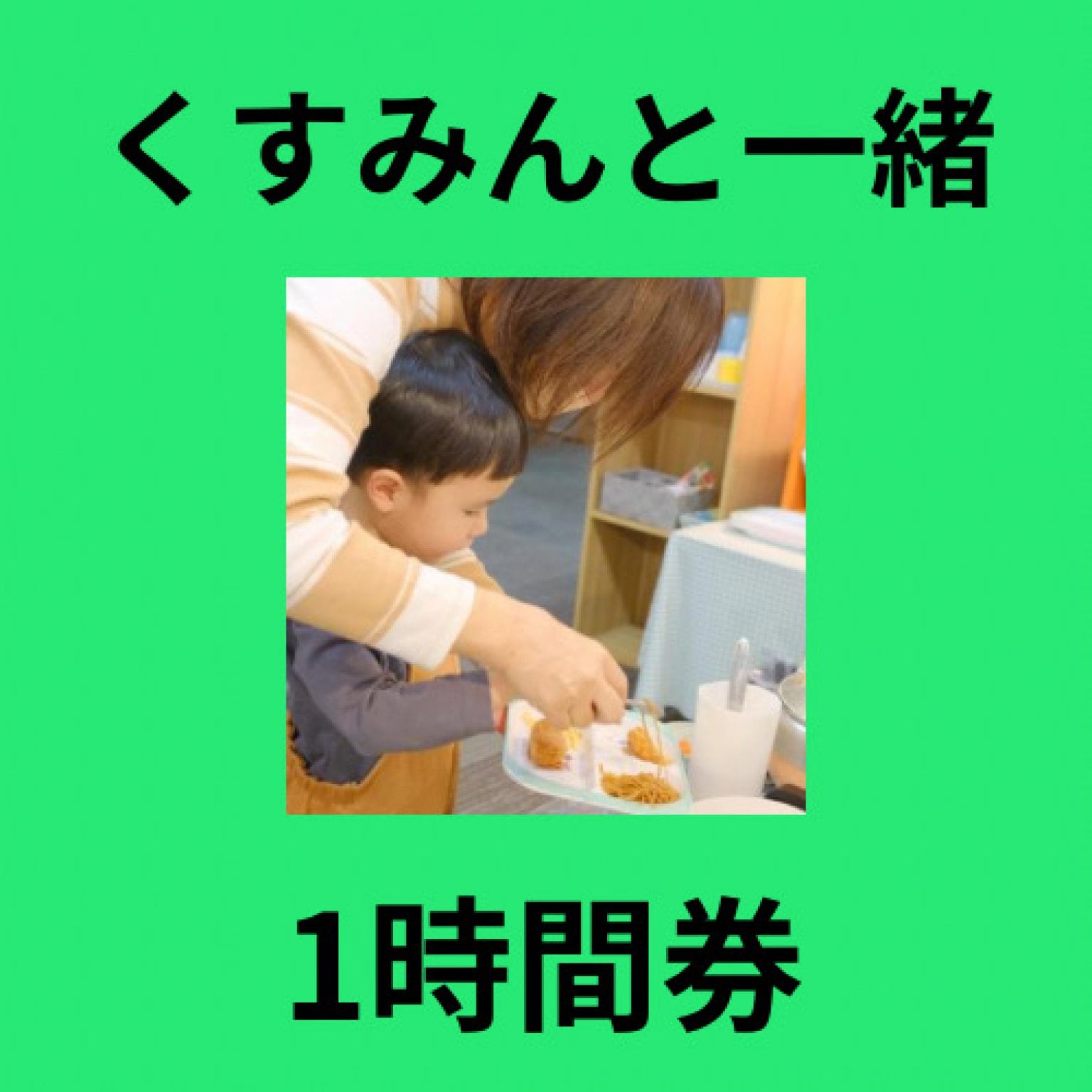 くすみんが保護者の方と一緒に同行または見守りする1時間利用券です。