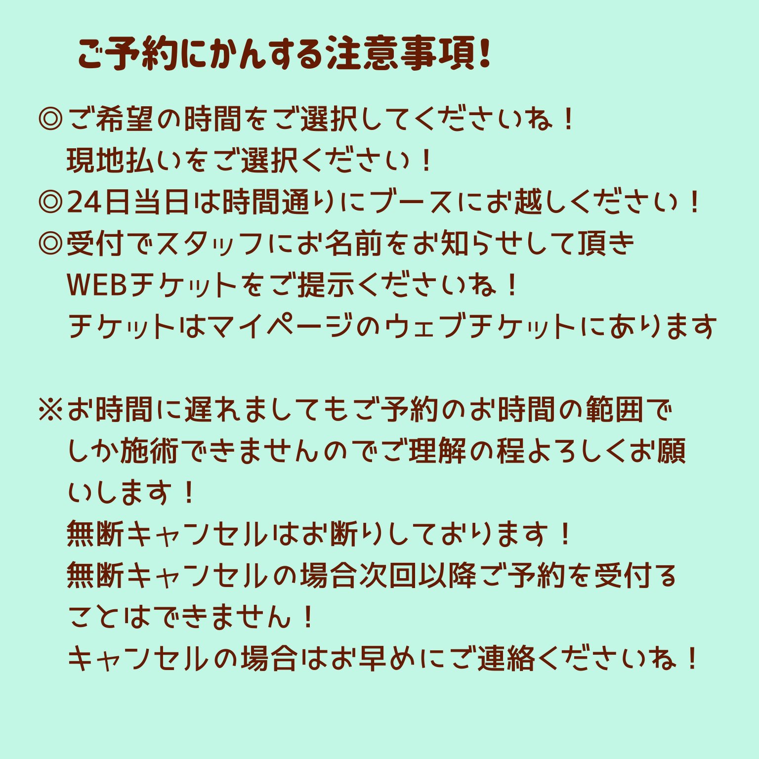 無断キャンセルされた方の次回ご予約は受付することができませんので