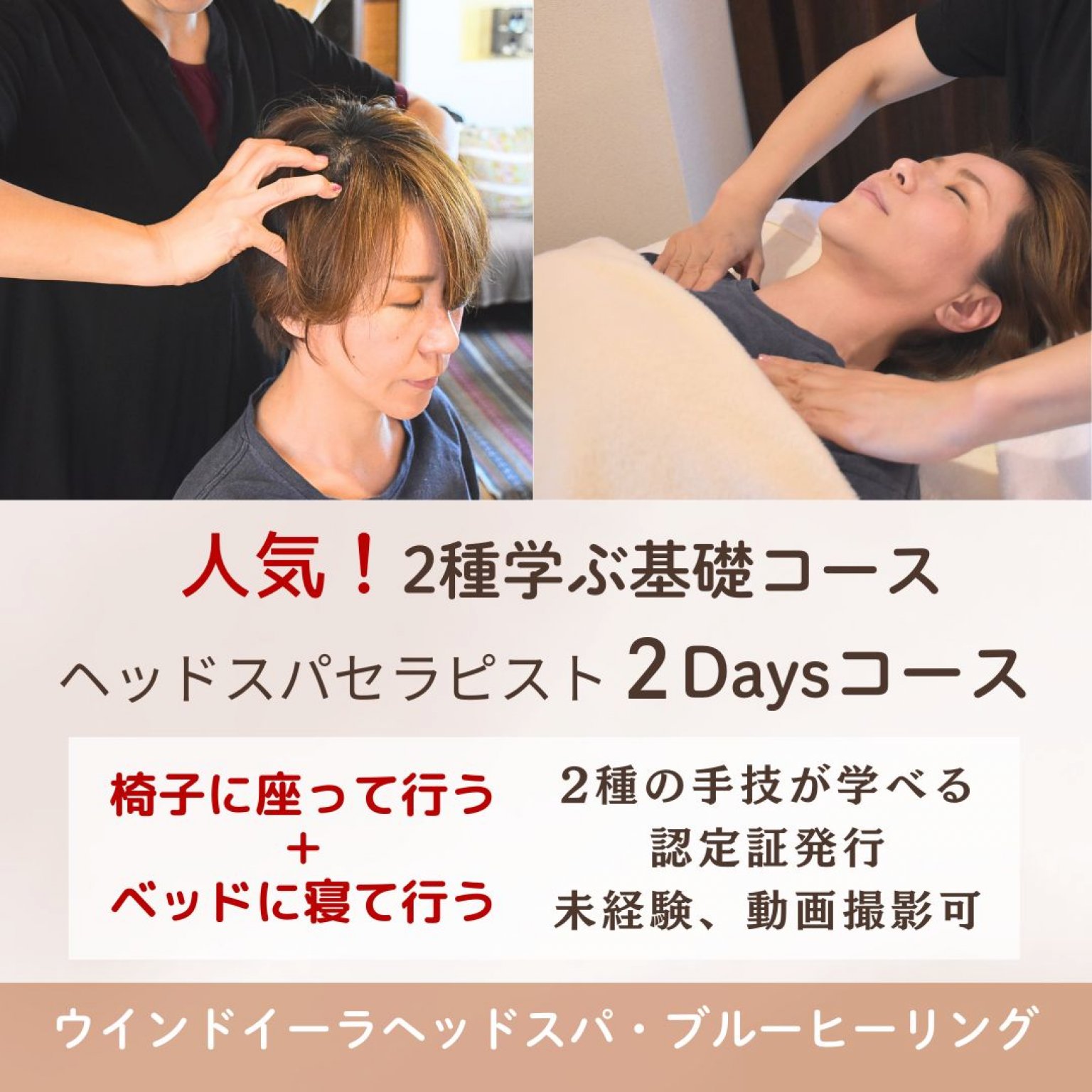 《ウインドイーラヘッドスパブルーヒーリング基礎セラピスト資格》