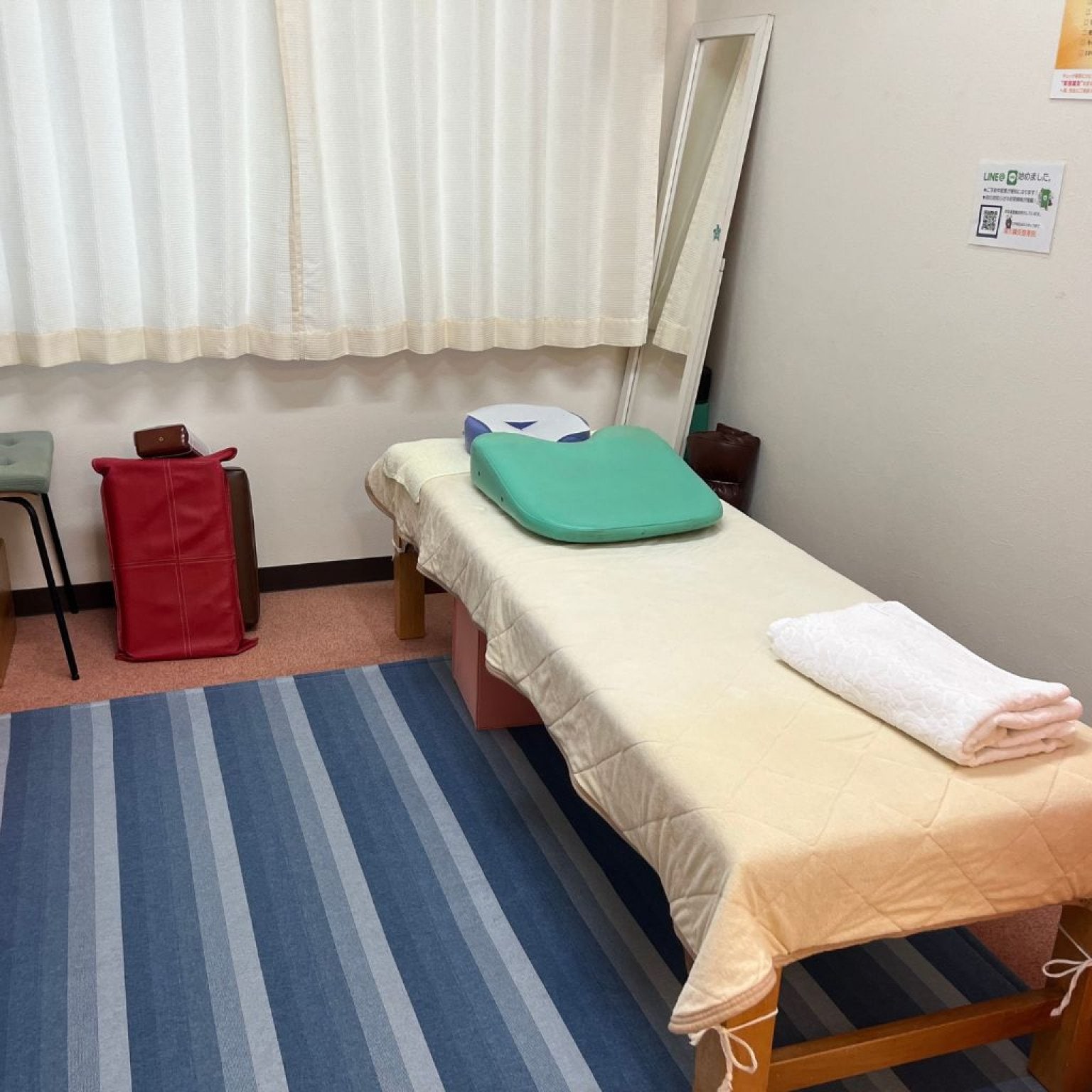施術の際足等を持ち上げることがありますので,できるだけ動かしやすい服装でお願いいたします。
