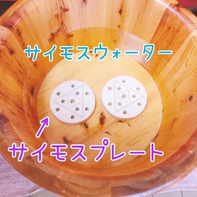 サイモスプレート(大)2枚を足の裏に敷いてメトリックウォーターを飲みながら30分リラックスください。