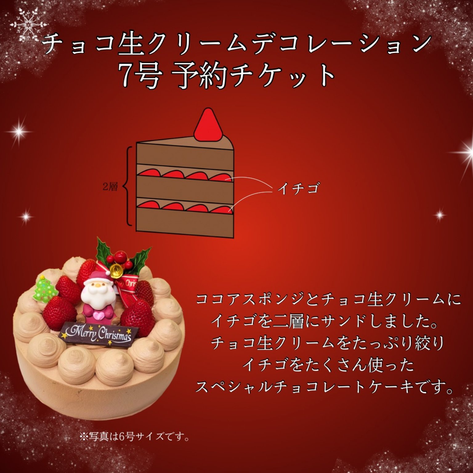 チョコ生クリームをたっぷり絞り、イチゴをたくさん使ったスペシャルチョコレートケーキです。