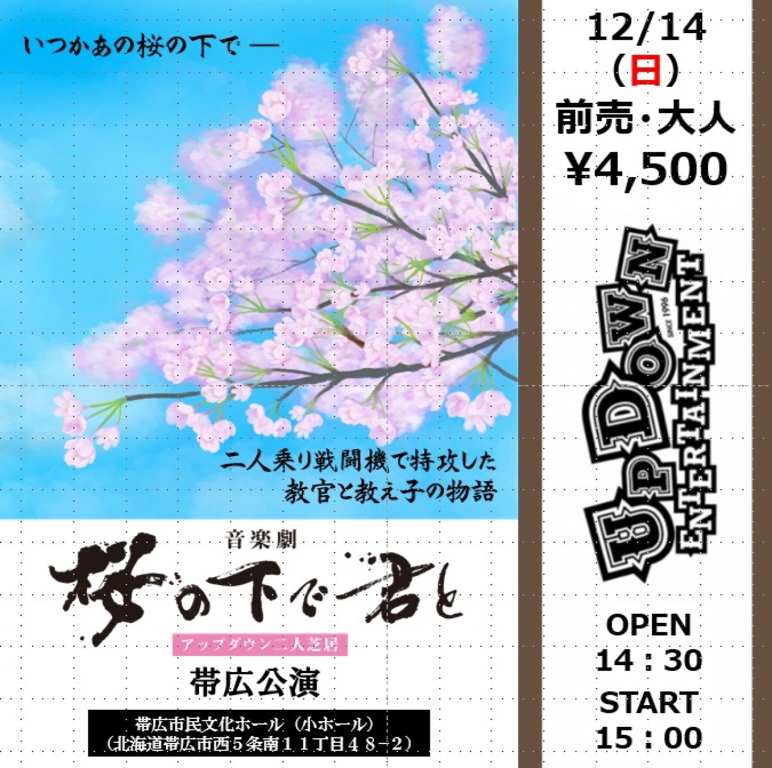 【アップダウン二人芝居 音楽劇「桜の下で君と」帯広公演】