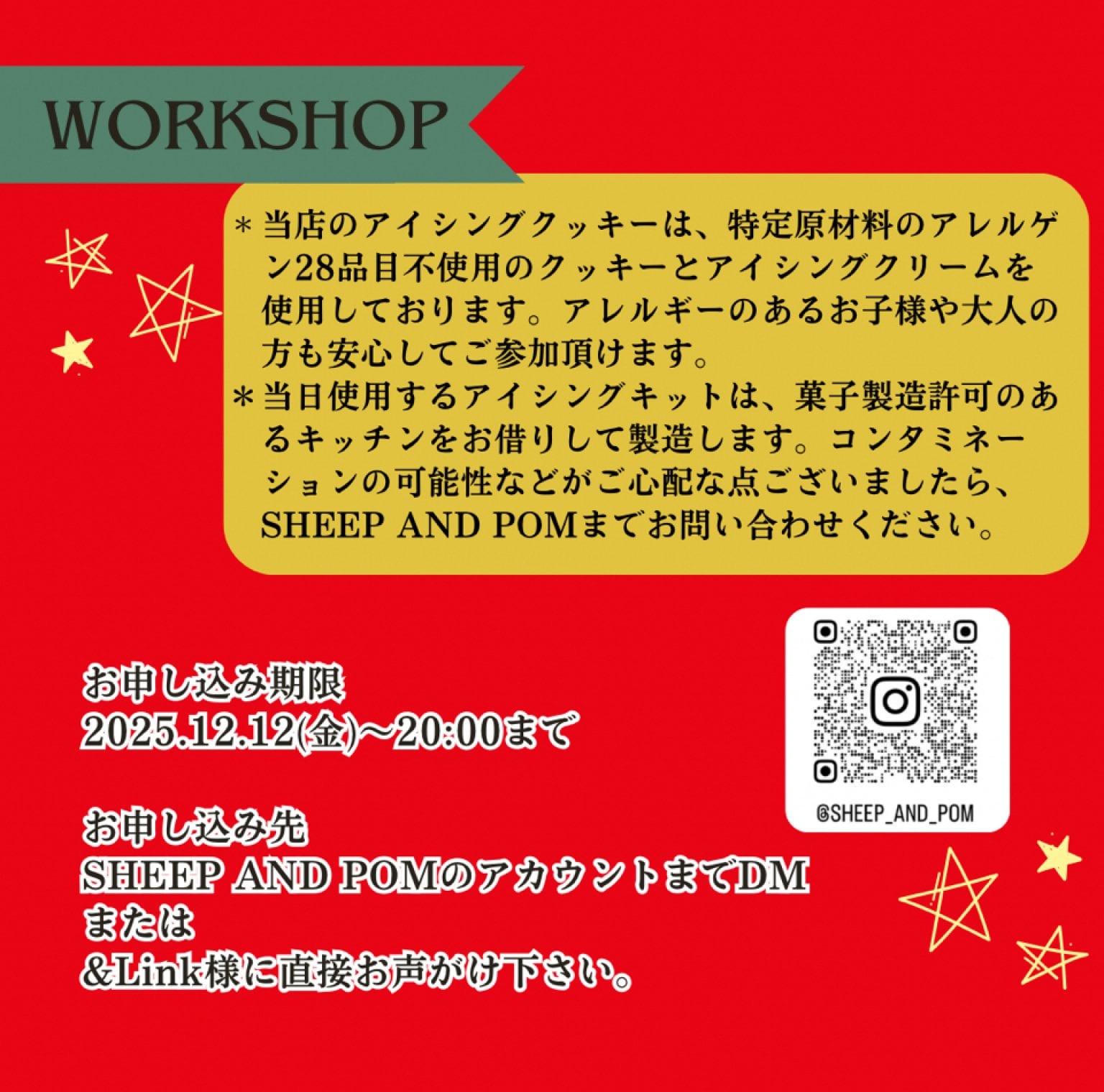 アレルギーのあるお子様や大人の方も安心してご参加いただけます。