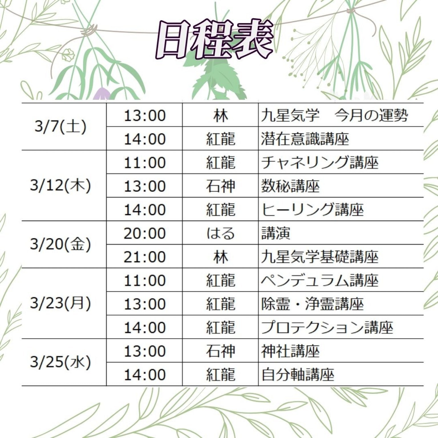 3/23(月) 11:00 紅龍 ペンデュラム講座