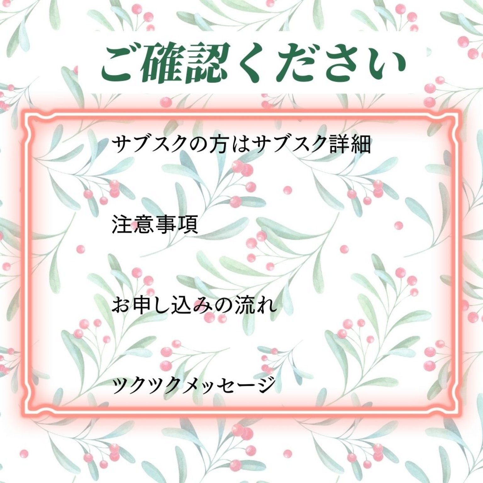 ・ご購入手続き後には、ツクツクのメッセージにてご案内事項をお送りいたします。必ず内容をご確認くださいますようお願いいたします。