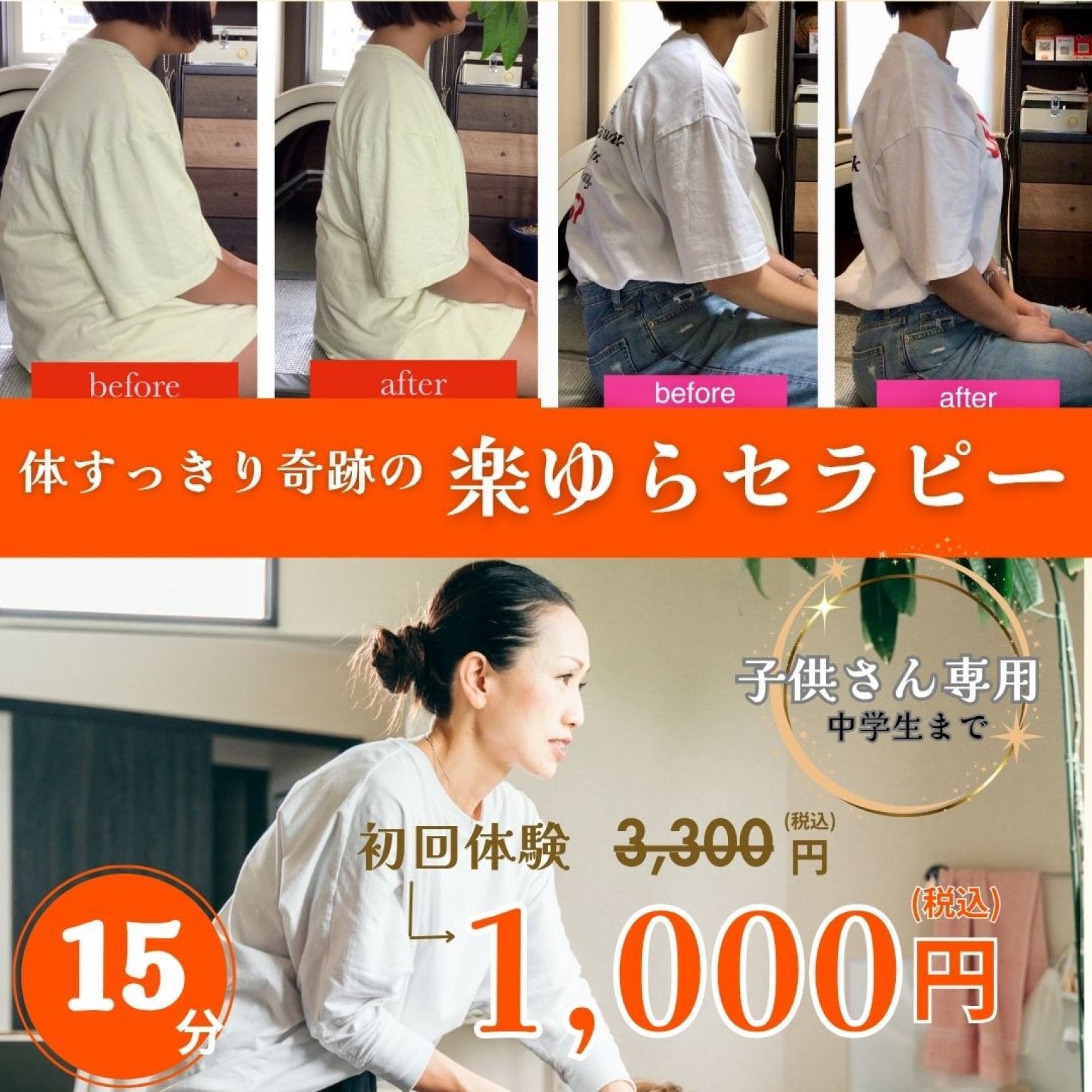 ※妊婦さんや、痛みがあってうつ伏せにならない方は、横向けでできますので申し出てください。