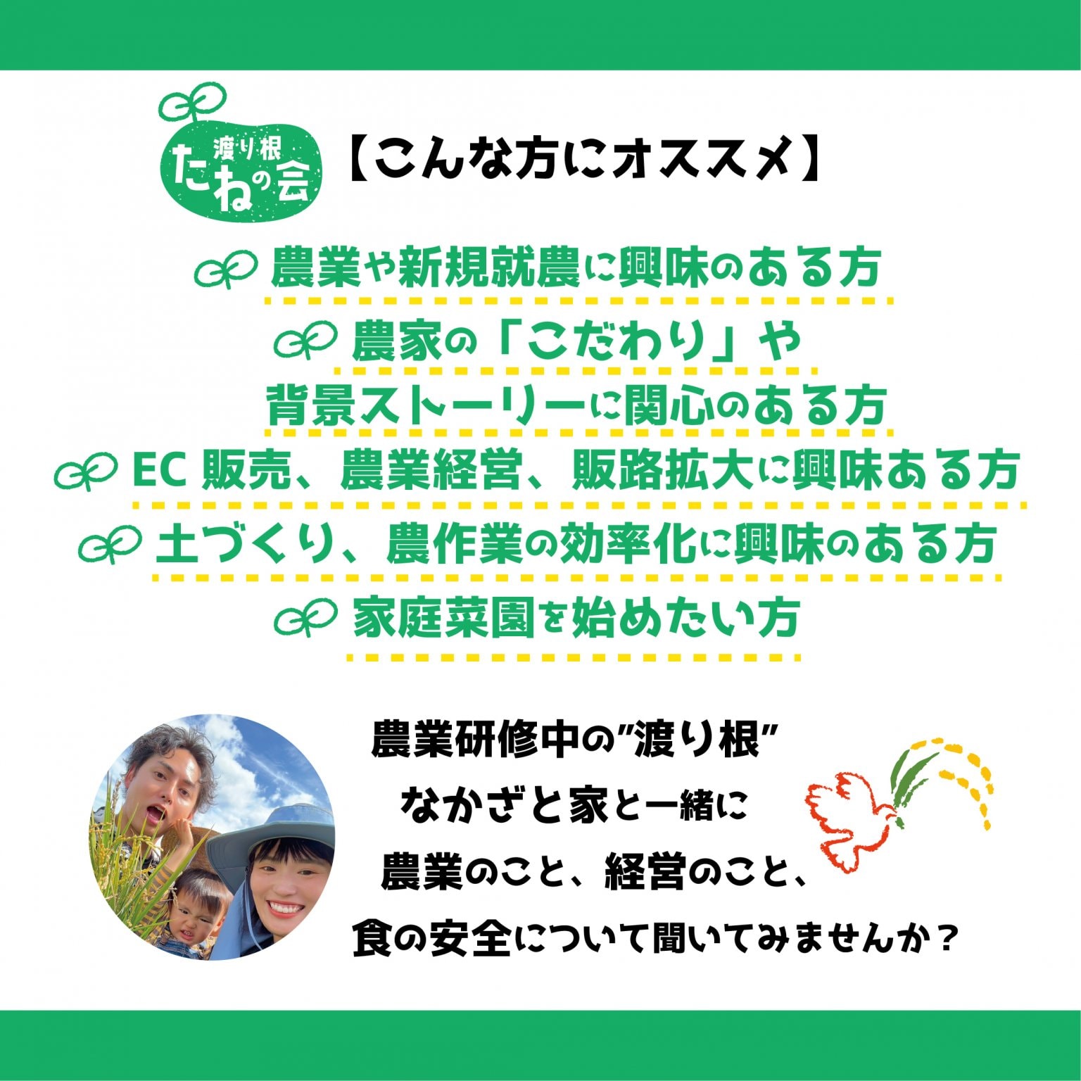・現役稲作農家である宮本さんに農業経営や野菜づくりに関してなんでもご質問していただけます。(チケット購入段階で質問事項がある方は、ぜひ備考欄へ記入お願いします。)