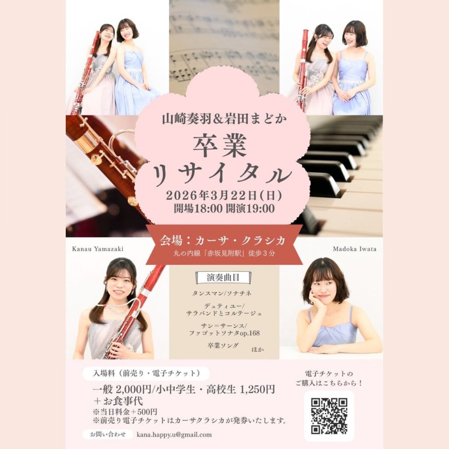 演奏予定曲目:サン=サーンス/ファゴットソナタOp.168、タンスマン/ソナチネ、卒業ソング 他