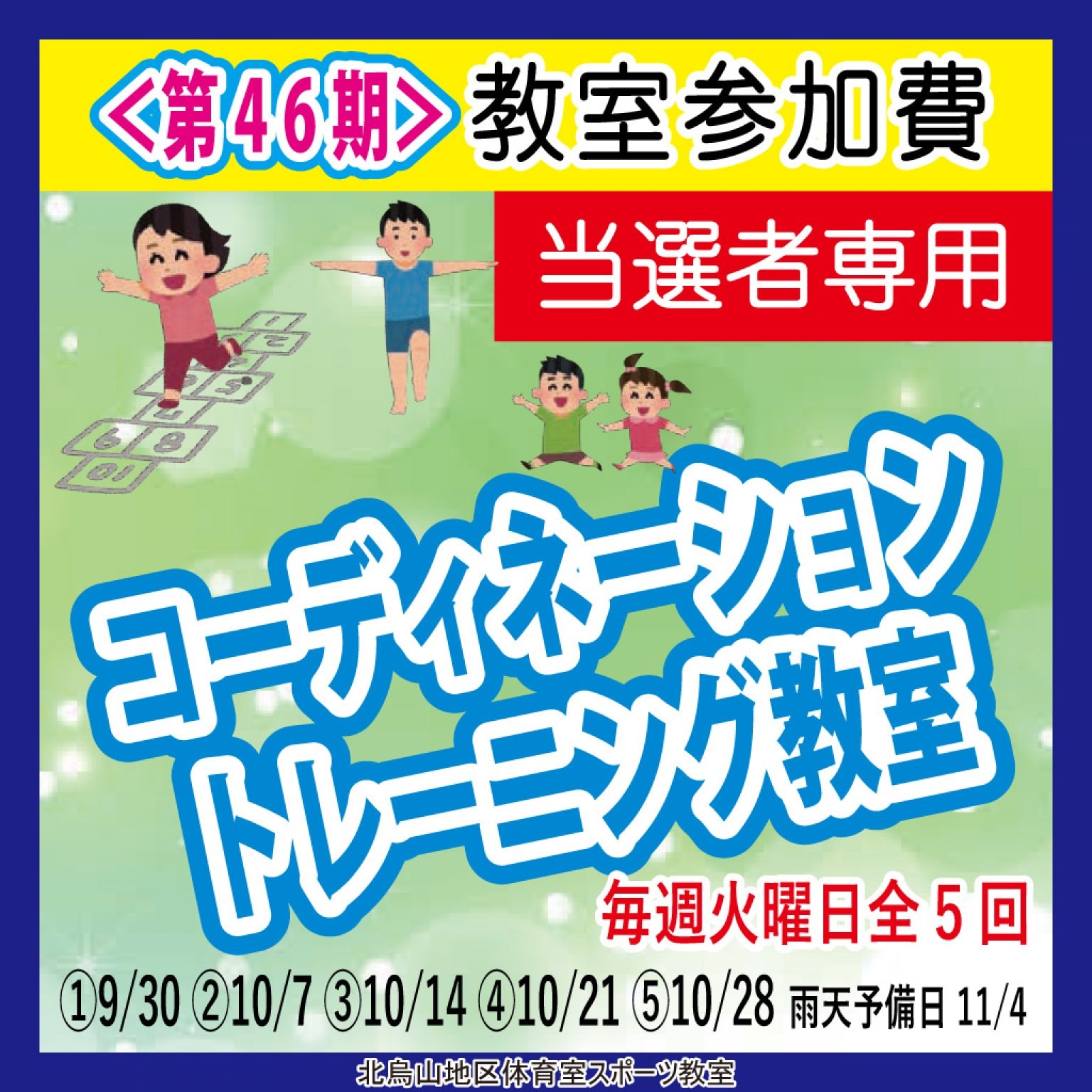 当選者の方は「北烏山スポーツ教室参加について」を必ずお読みの上、承認書に署名して、教室初日にご提出ください。