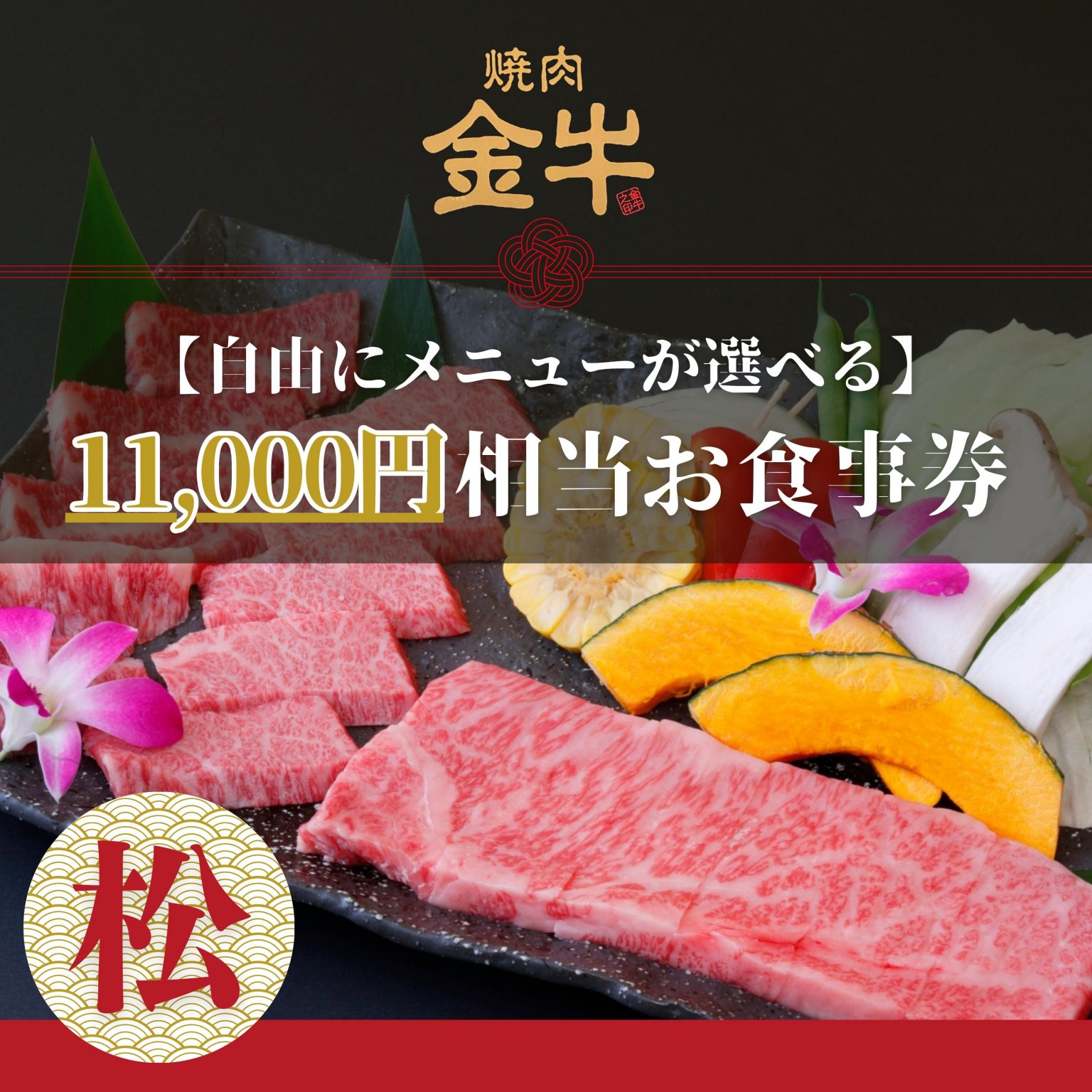 11,000円相当分の【プレミアムお食事券(松)】です。
