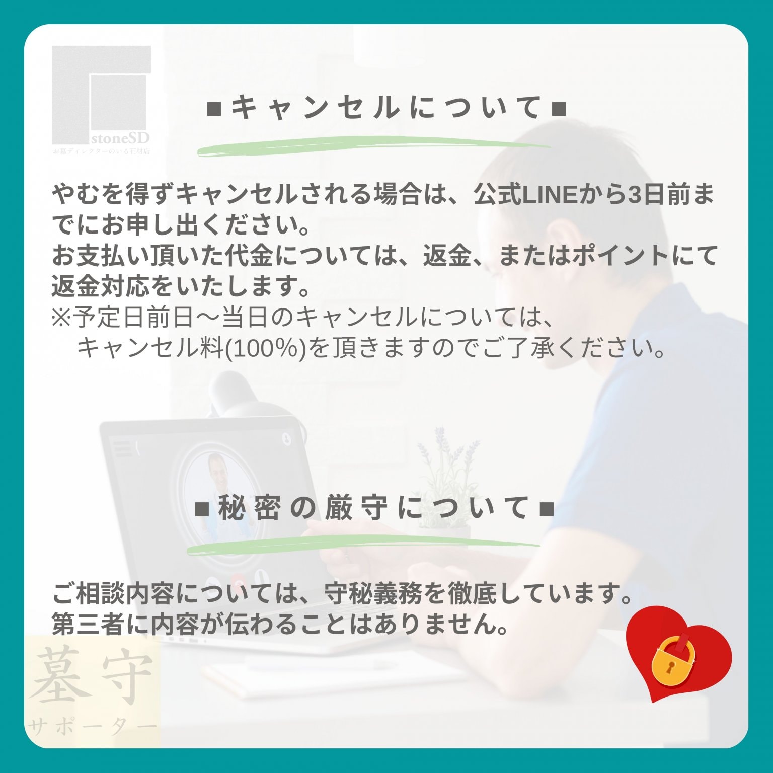 『stoneSD』は、お墓ディレクターの資格を有しておりますので、お墓に関するご相談をオンラインにてお伺いします。