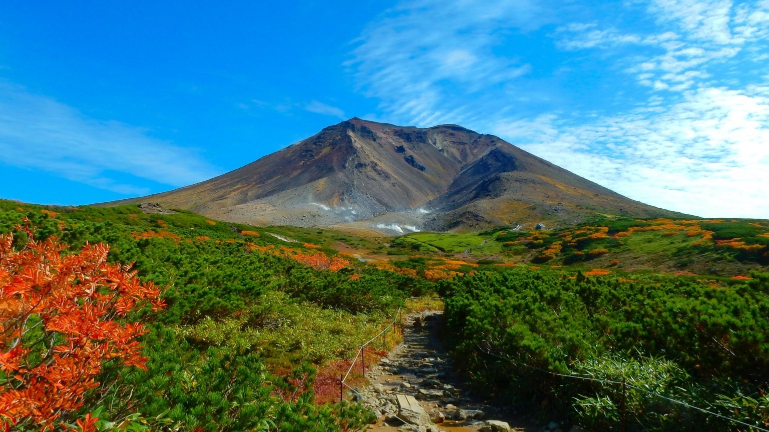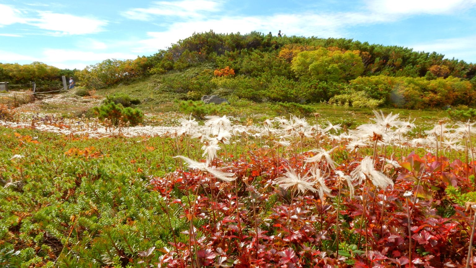旭岳に到着後、ロープウェイでアカエゾマツの森(1100m)から高山帯(1600m)へ登ります。高山植物や火山景観をお楽しみください。(約2時間のハイキング)
