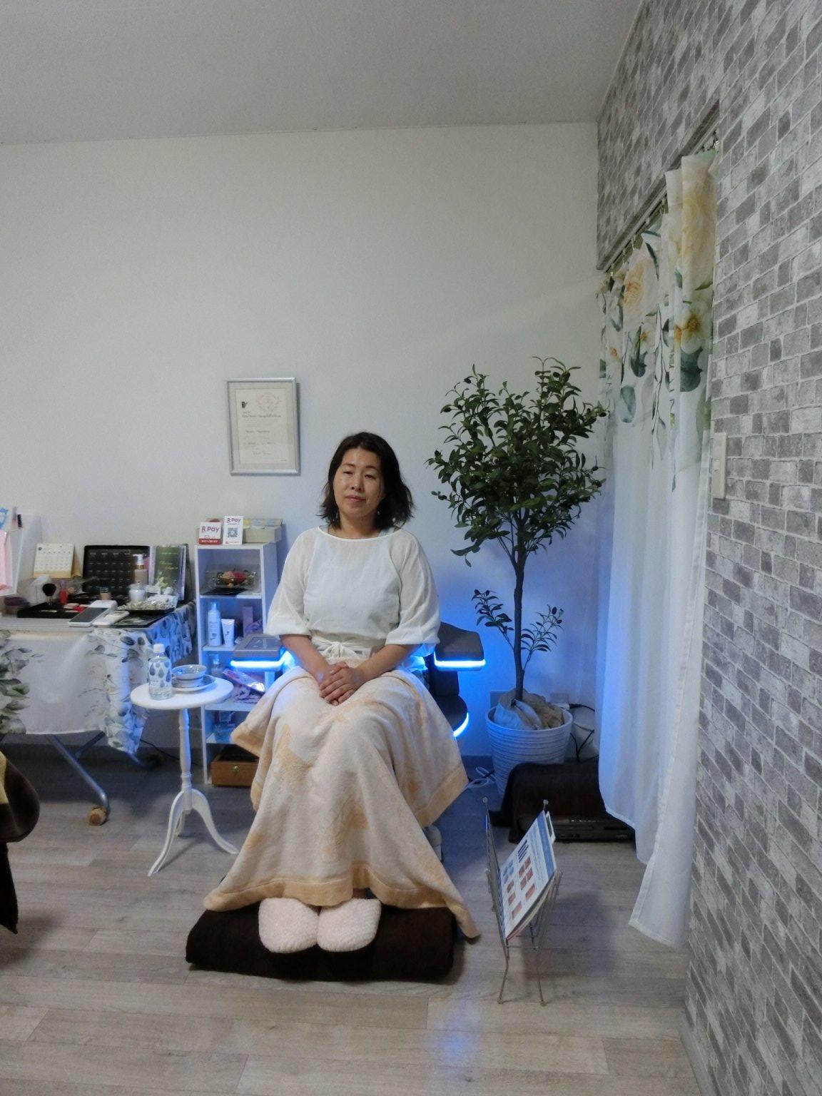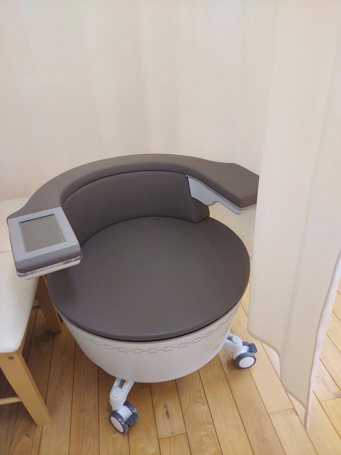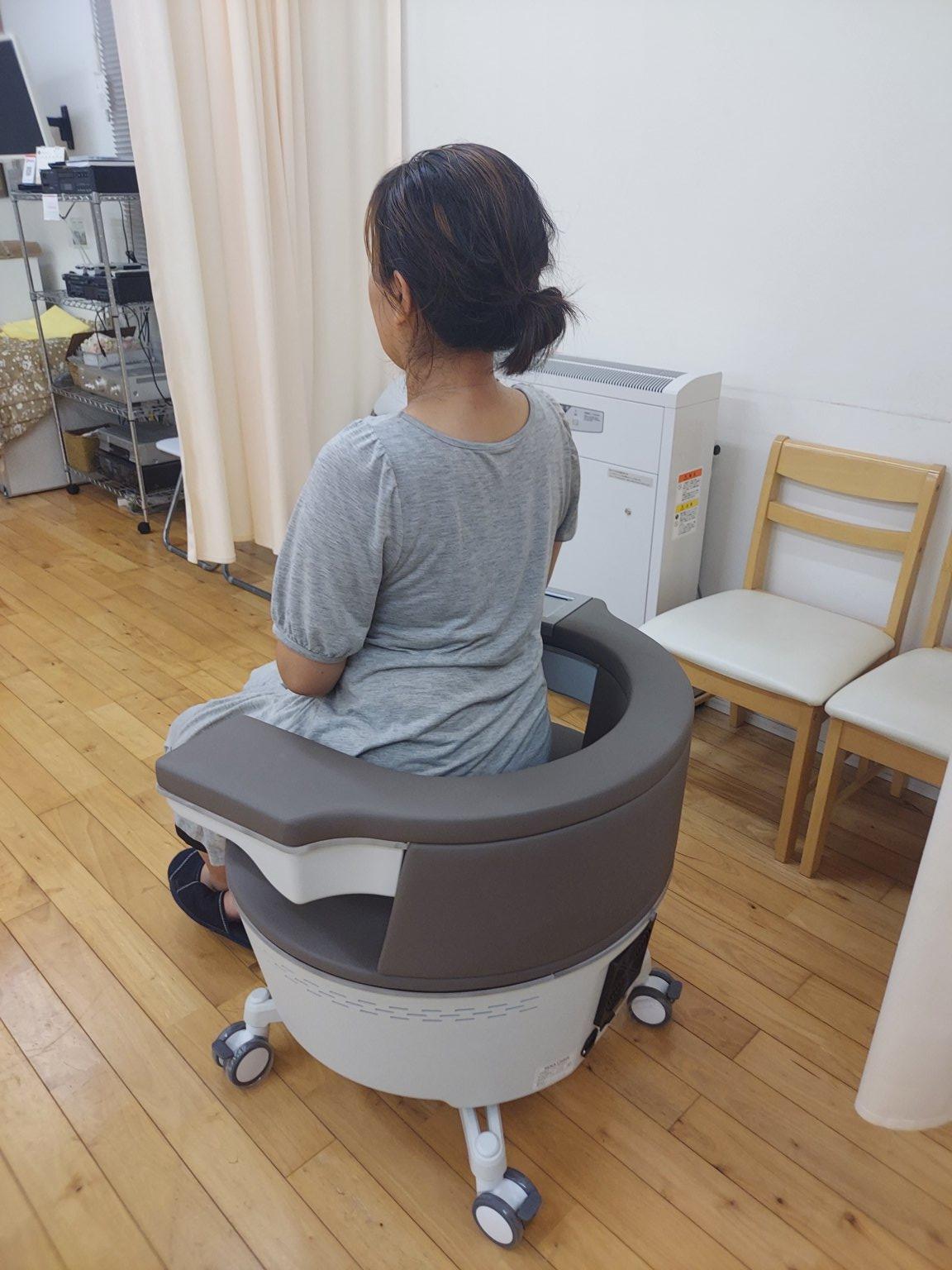 座るだけで骨盤底筋訓練できるルネチェアへ座りながら、初回カウンセリングを行います。