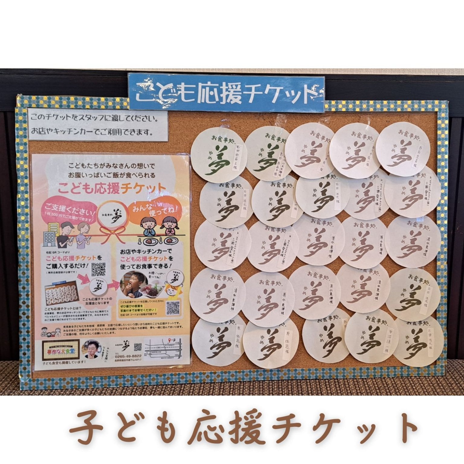 そして、このお食事処・夢がいつも子供たち始め地域の方々の居場所となりたいとの願いのもと、このチケットを作らせて頂きました。私達だけの小さな力ではなく、地域の皆さん、思いを知って応援して下さる皆さんのお力と思いを寄せて頂けたら幸いです。