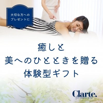 女性に贈りやすい体験ギフト券です。休日や仕事帰りにできる、脱毛サロンClarte.(クラルテ)人気のメニューをご希望に合わせて施術いたします。