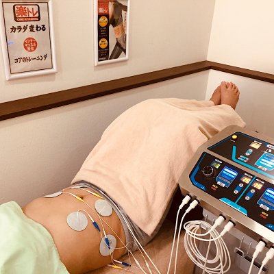 そこで、通常の施術にプラスして導入したのが複合高周波EMS「楽トレ」です。