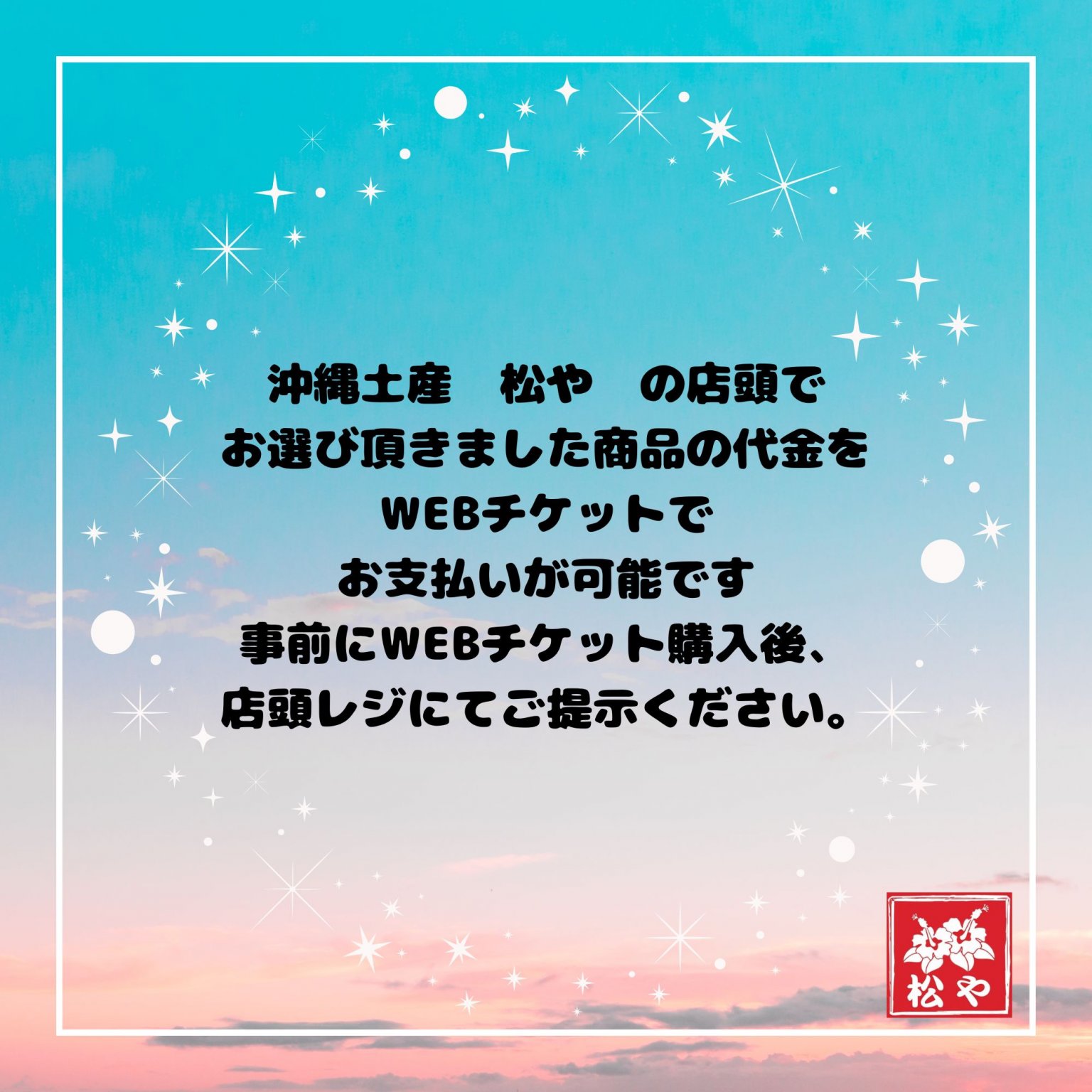沖縄土産 松やの店頭でお選びいただきました商品の代金をWEBチケットでお支払いが可能です!