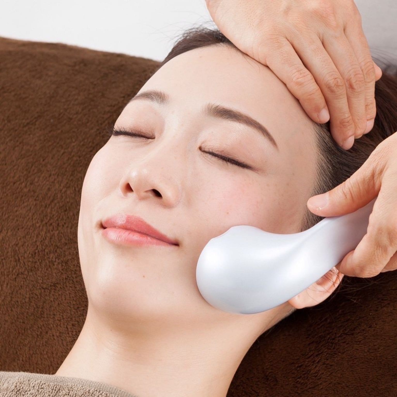 磁気と手技で顔のツボを施術