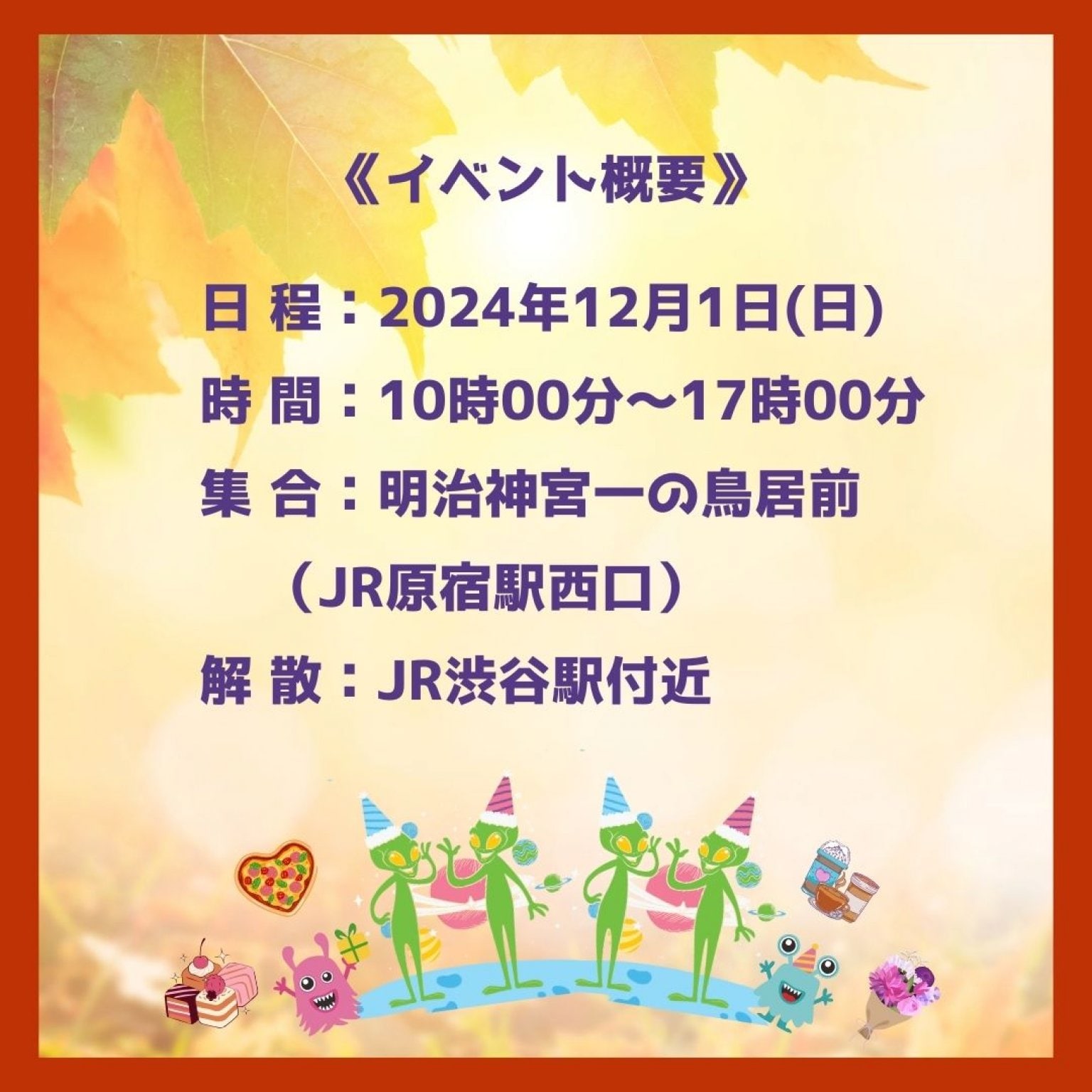 ・イベント開始時刻の10分前までに明治神宮一の鳥居前に集合してください。