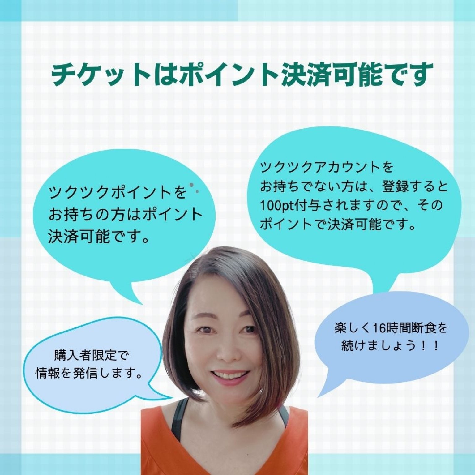 「楽しく16時間断食オープンチャット」登録者限定チケットについて、説明しております。