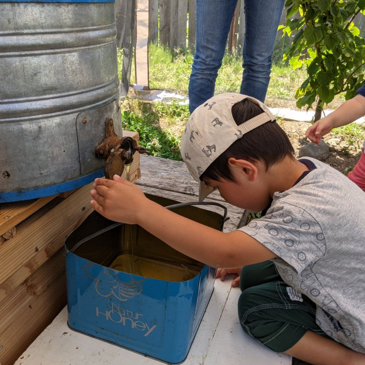 ・ミツバチの観察と採蜜体験(蜜蓋切り・遠心分離機回し等)