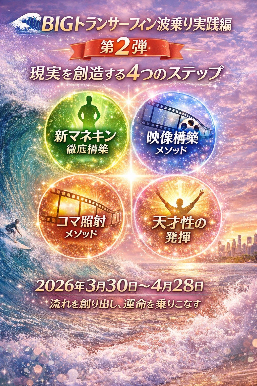 • 【プレミアムコース】アンジェリ版『BIGトランサーフィン 波乗り実践編 』~幸運の大波に確実に乗れるカラダになる~(途中参加可:30日間プログラム)