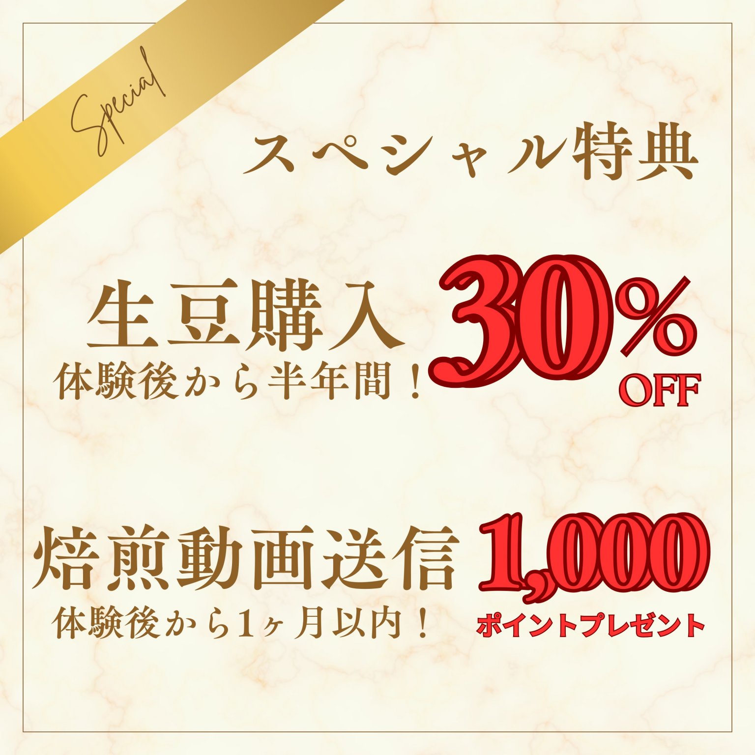1.特別価格にて生豆を購入できます。(30%OFF)