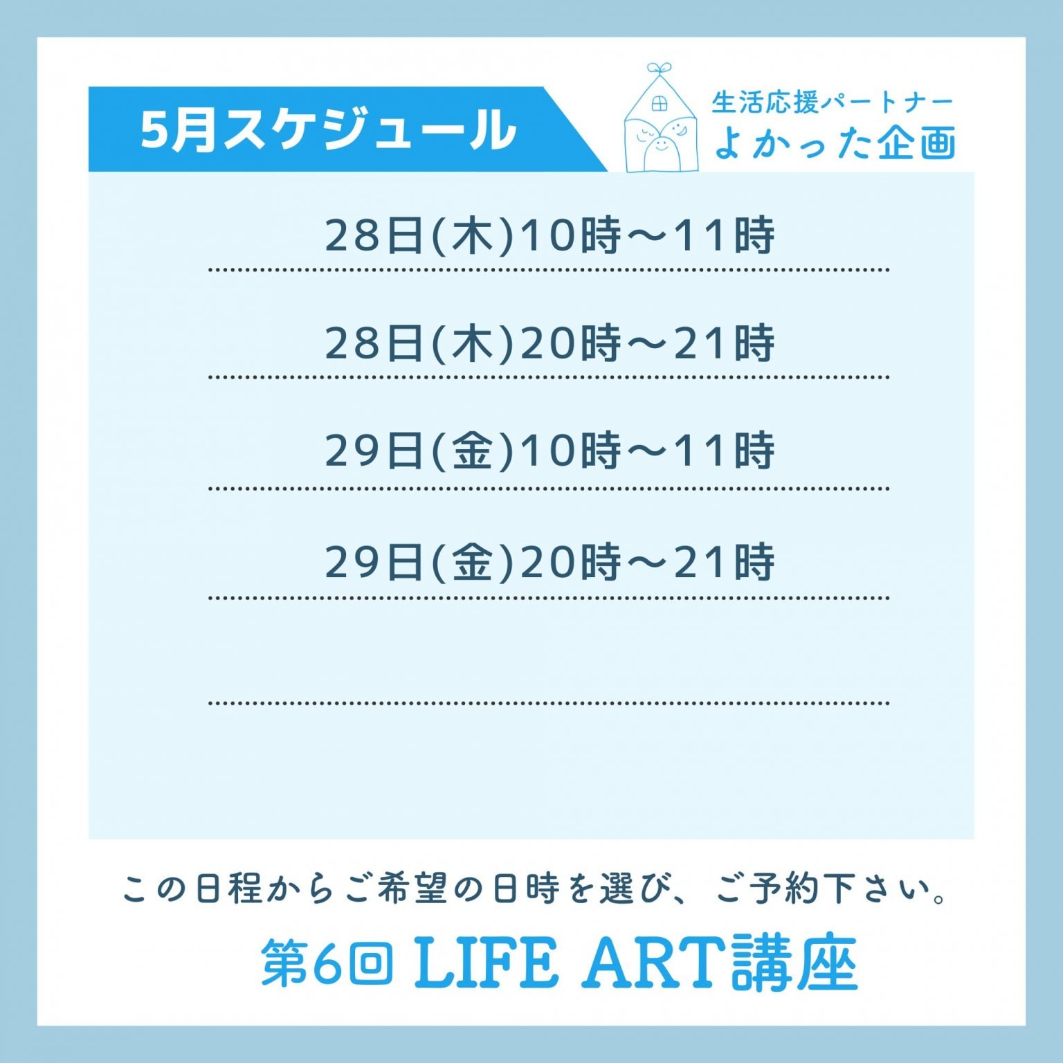 生活や人生が魅力的なARTの域に高められる様な講座になればと、LIFE ART講座と名付けました。どうぞ、お気軽にご参加ください。
