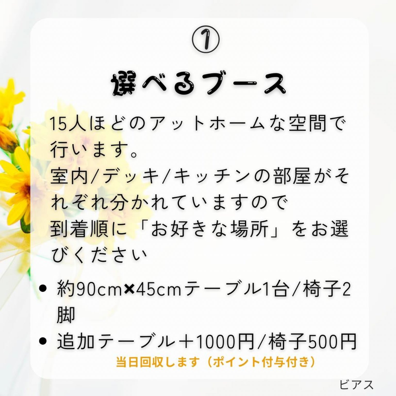 美容/ボディケア/SNS活用術/動画配信活用術/婚活(障害ある方も可能)/ペット/ワークショップ/販売/福祉相談員/不動産に至る幅広い分野まで、様々なプロからお話や体験が出来るイベントも企画しています。