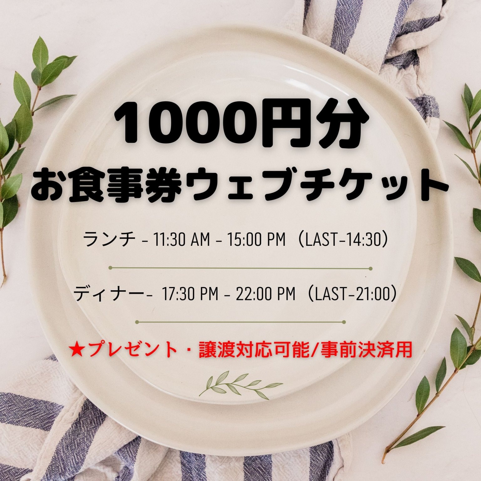 ご予約の際に「お食事ウェブチケット」をお持ちの旨、お伝え下さいませ。
