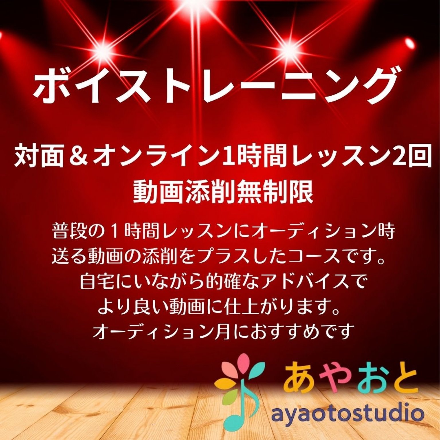 自主練習必須、最低でも練習してきたことの方向性チェックで月2回、1時間かけて、身体・呼吸・声を丁寧に見ていくことが、舞台に立つ上で大きな力になります。