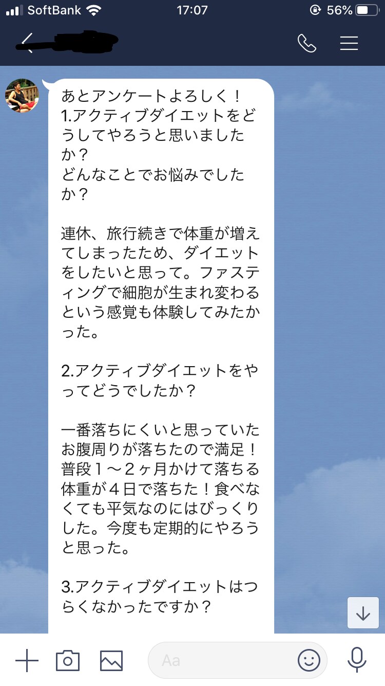 ・アクティブダイエットを受けてどうでしたか??