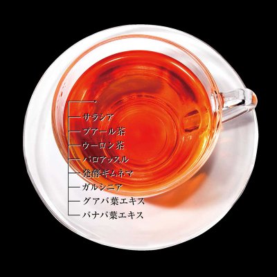 つい乱れがちな食習慣にアプローチするサラシア、プアール、ウーロン、パロアッスル、発酵ギムネマなどのハーブ&サポート素材を全38種類配合。
