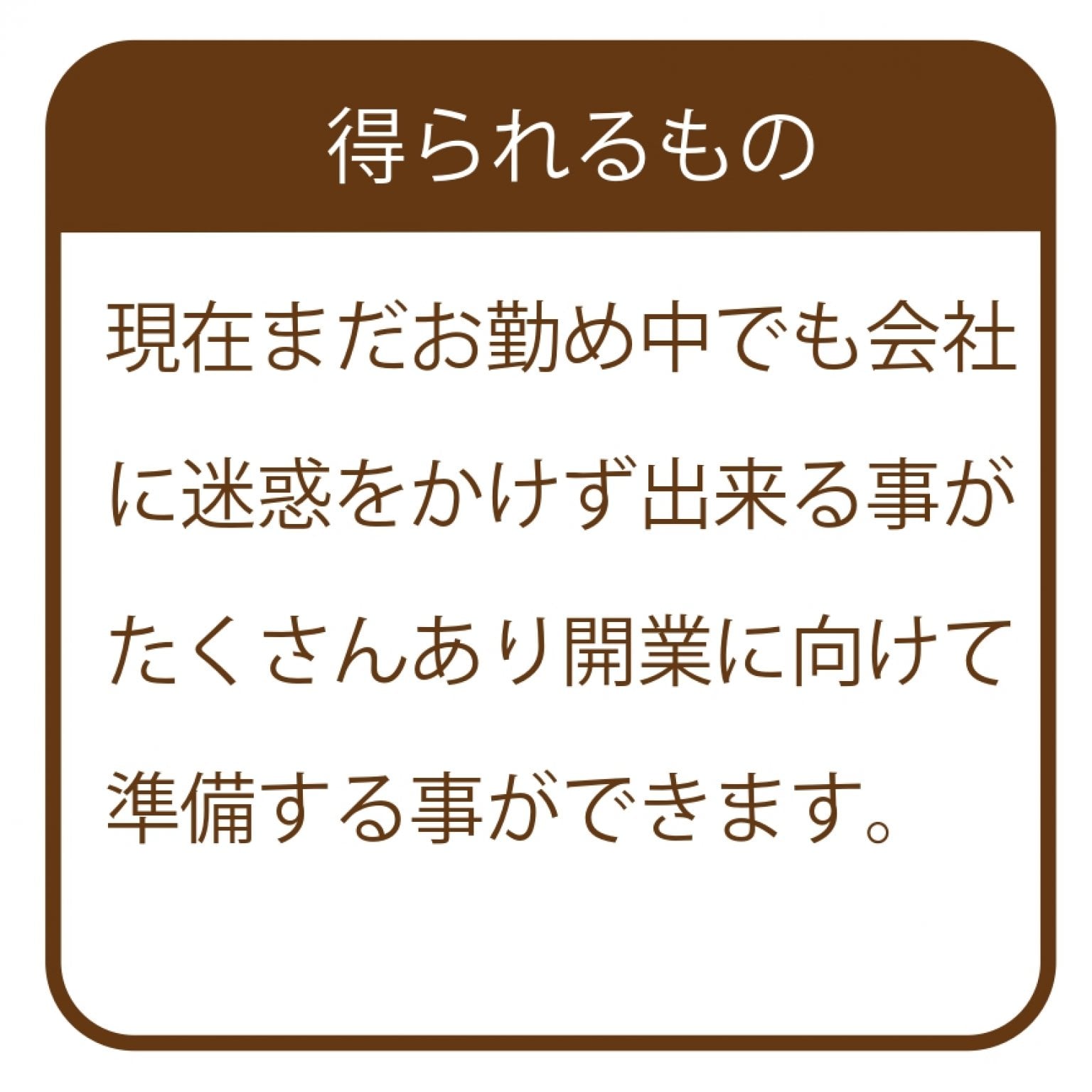 ◆現在まだお勤め中でも会社に迷惑をかけず出来る事がたくさんあり開業に向けて準備する事ができます。