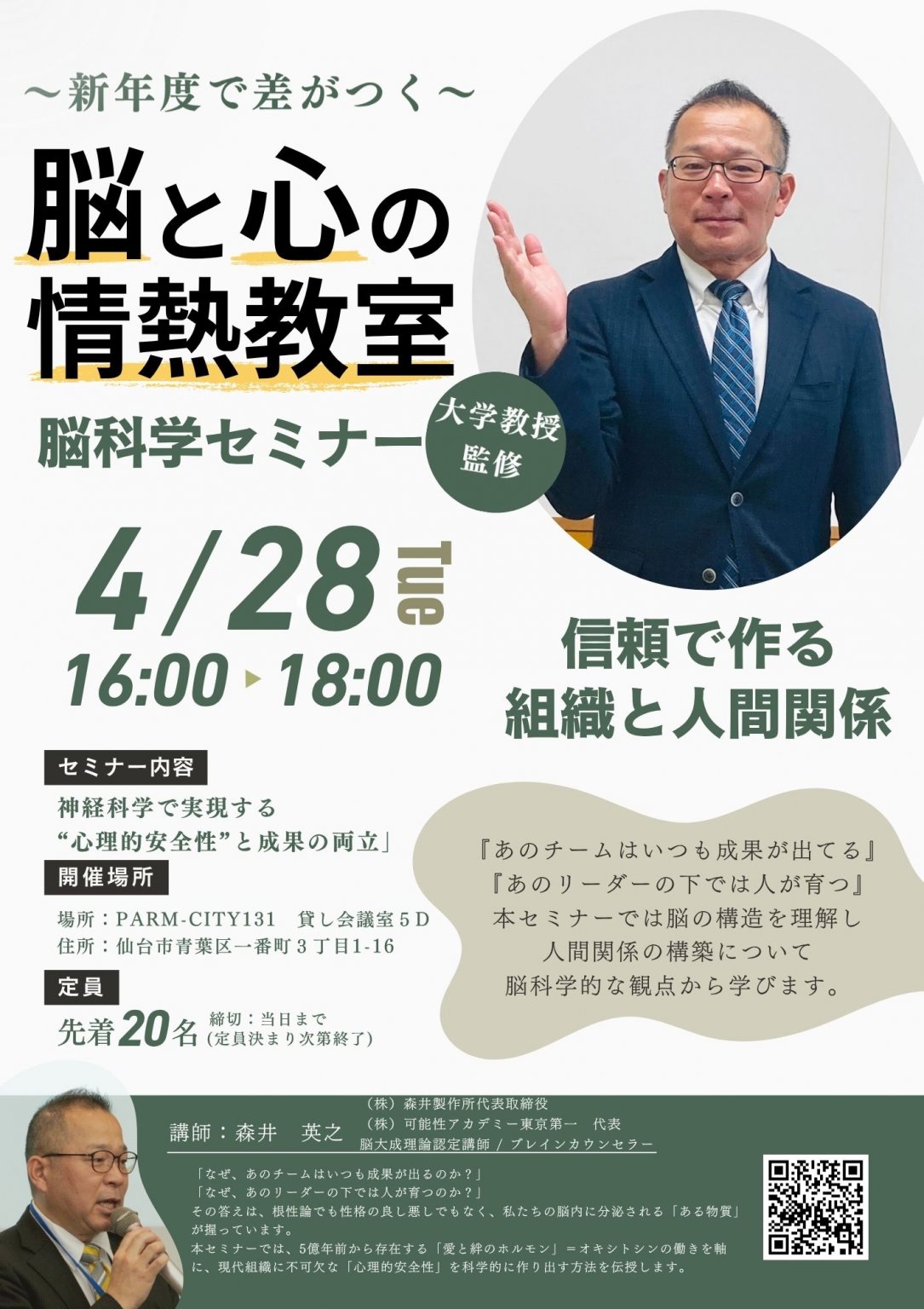 本セミナーでは、5億年前から存在する「愛と絆のホルモン」=オキシトシンの働きを軸に、現代組織に不可欠な「心理的安全性」を科学的に作り出す方法を伝授します。