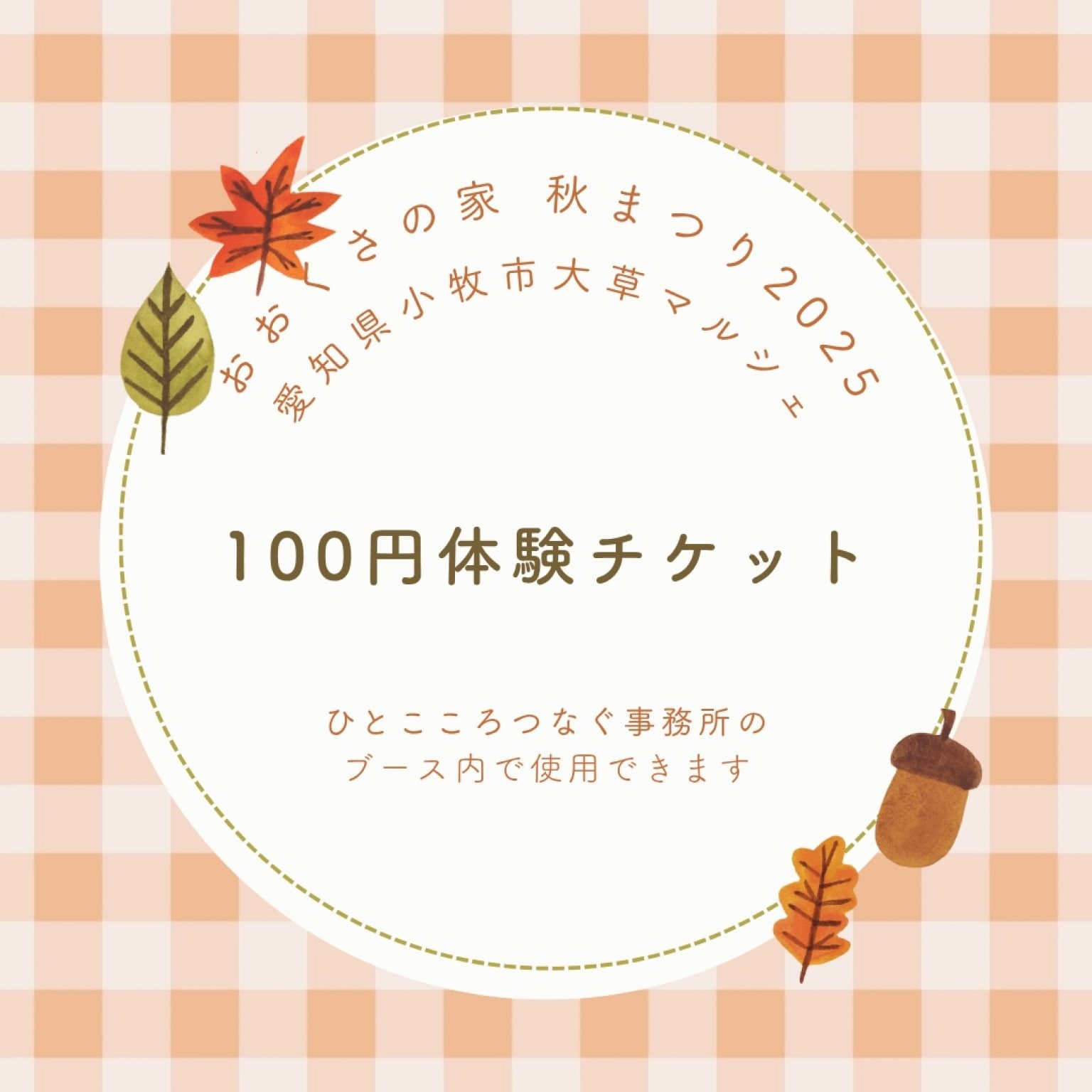 愛知県小牧市大草で行われる【おおくさの家秋まつり】マルシェ。ひとこころつなぐ事務所が用意したさまざまな体験ができるチケットです。