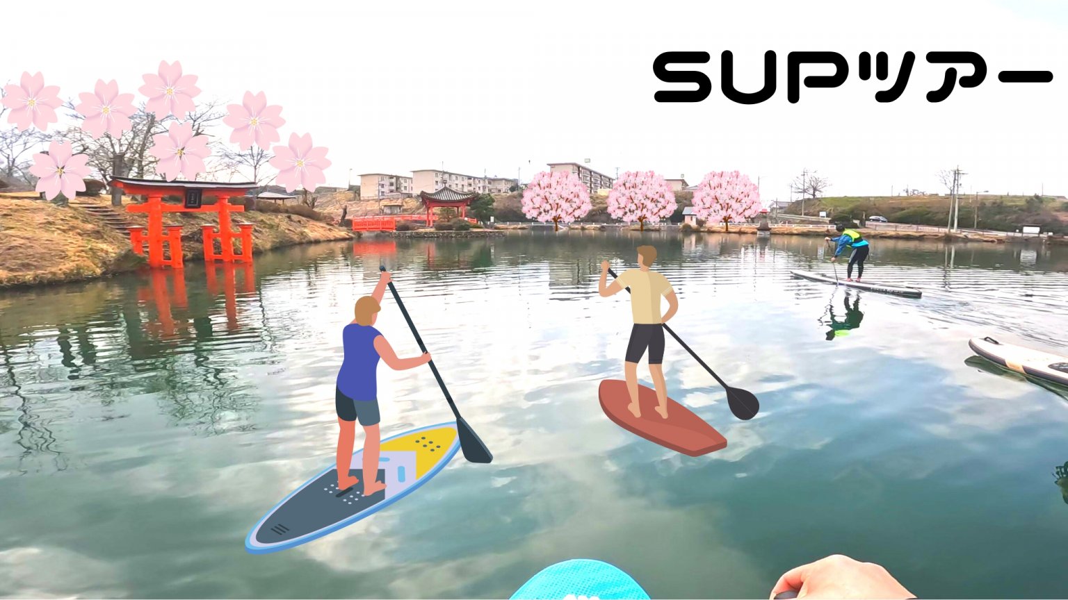 ・出航〜30分程度:水上で、お花見×SUP体験!