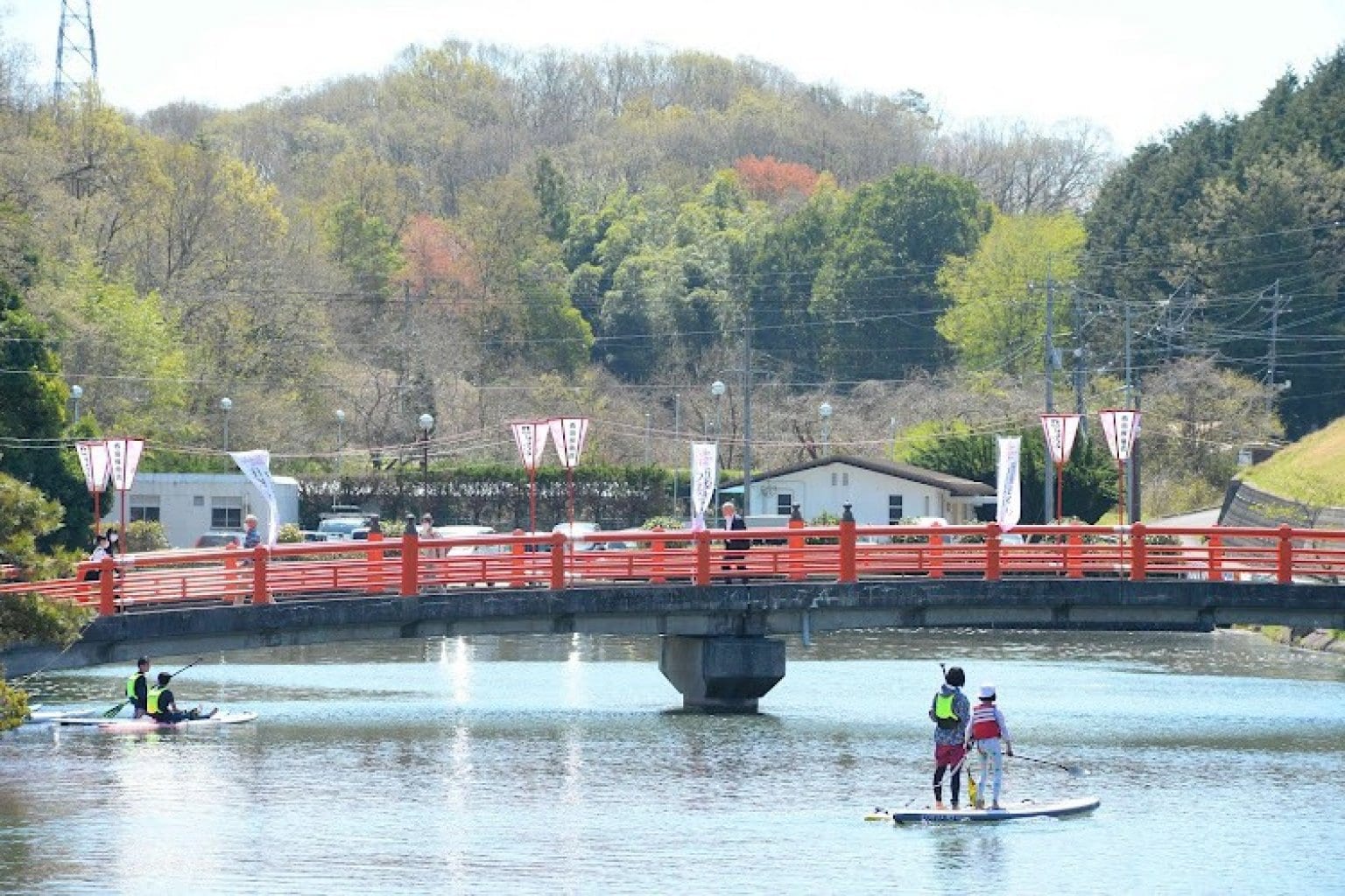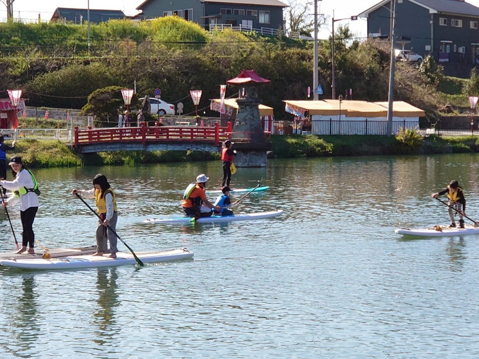 SUP体験会以外にも、釣りや散歩など、公園はたくさんの方が利用されています。配慮を忘れず、注意して楽しみましょう。